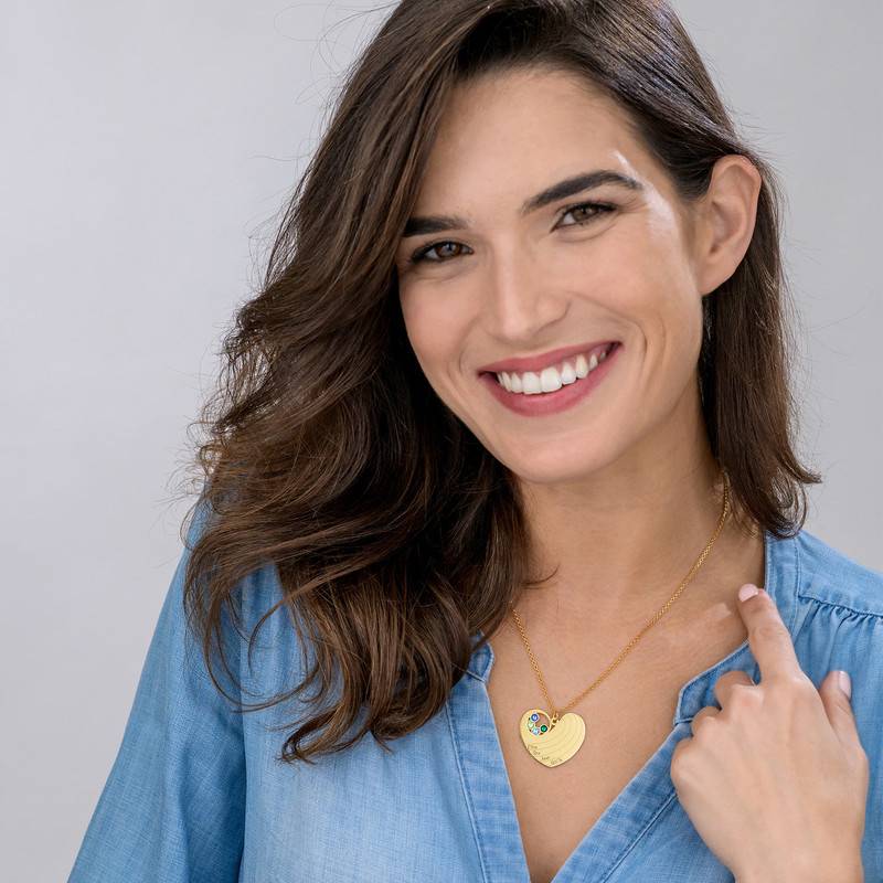 Interlocking Heart Pendant Necklace with Birthstones in Gold Plating-4 product photo